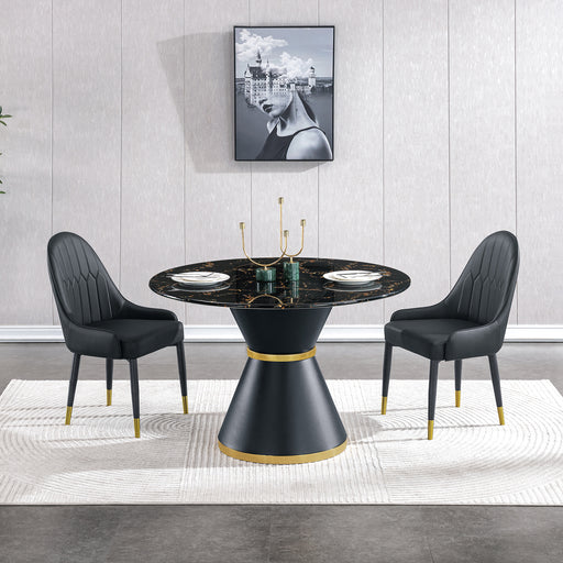 ROUND DINING TABLE 25 MM BLACK/WHITE/BROWN MDF PANEL BLACK/WHITE/BROWN RIPPLE LEGS 201 STAINLESS STEEL SIZE:46.5"Lx46.5"Dx29.9"H